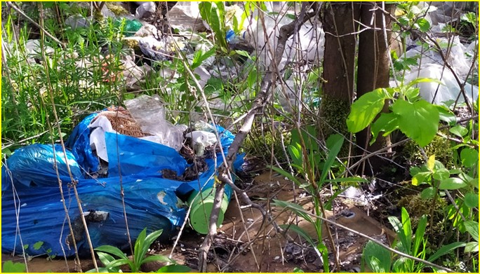 Bystre oko widzi dużo. Maszerując trasą, wydaje się dość często uczęszczaną, zauważyło skarby schowane wśród krzewów. Wszystko, dosłownie wszystko. Butelki plastikowe, butelki szklane, wiadra, worki, buty, meble, itd. Ciekawe do kogo to należy? Nie ma żadnych zabezpieczeń, żadnego strażnika?
