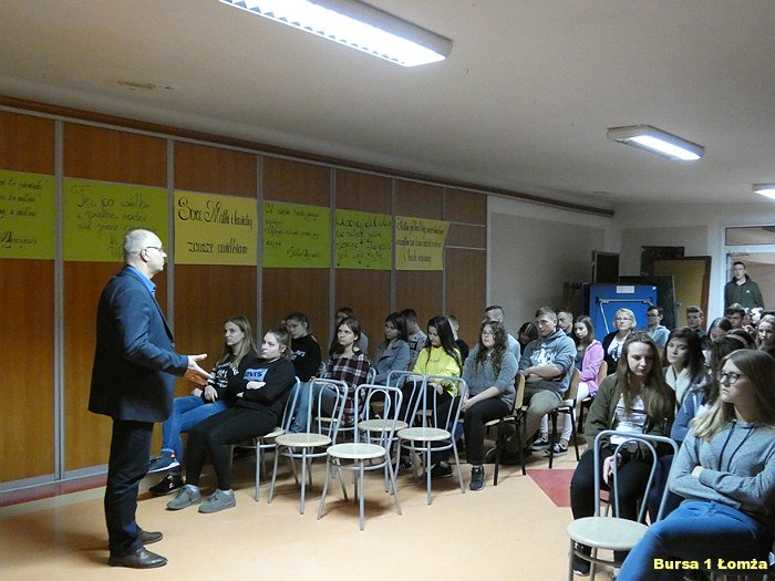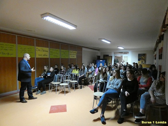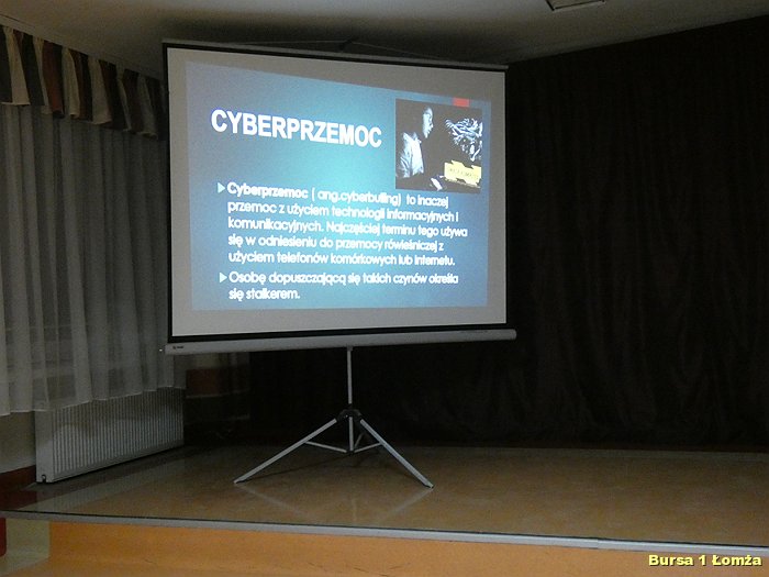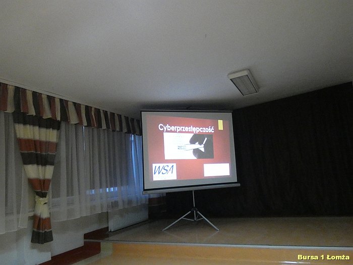 Na temat wielu zagrożeń w sieci w Bursie Szkolnej Nr 1 w Łomży dnia 12.03.2019 r. odbyła się prelekcja, w której uczestniczyli wychowankowie i niektórzy wychowawcy tej placówki. Prelekcję poprowadził p. K. Cwalina - pracownik Wyższej Szkoły Agrobiznesu w Łomży.