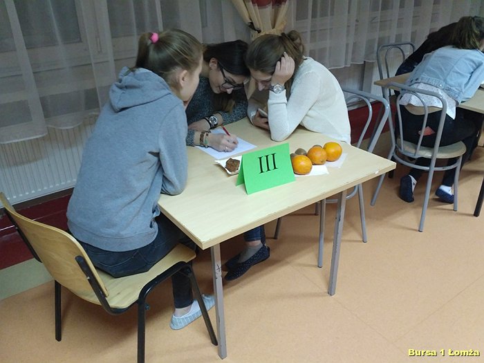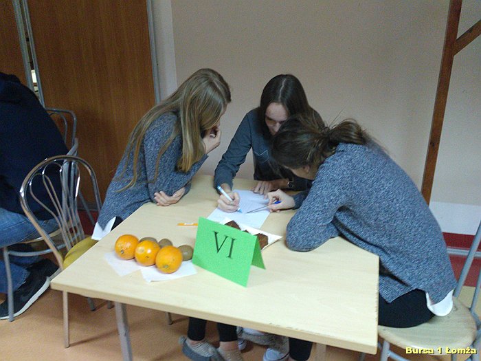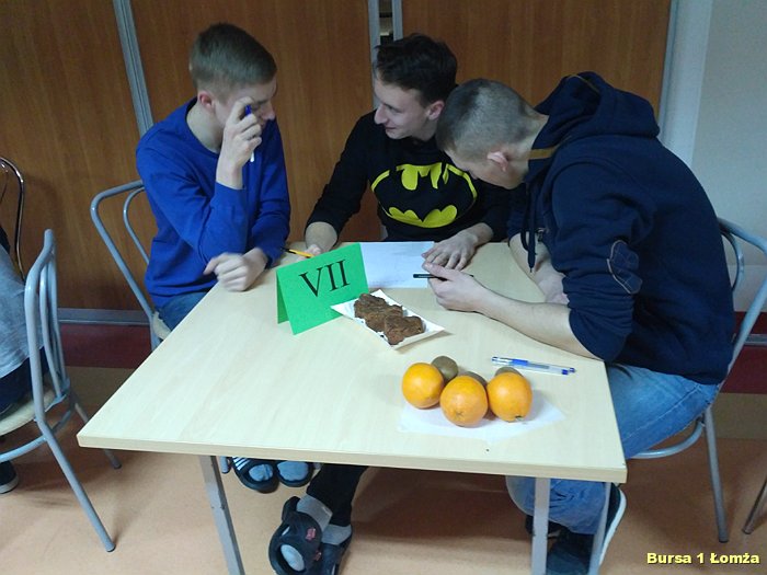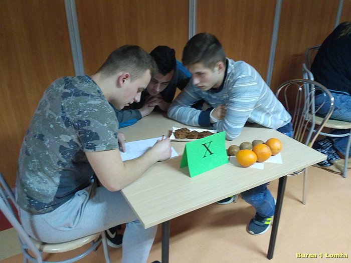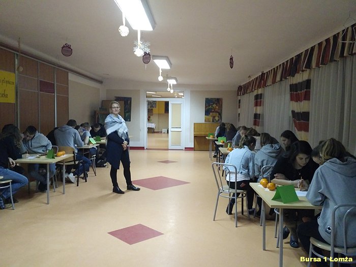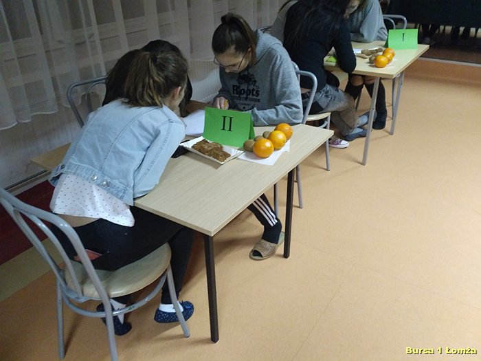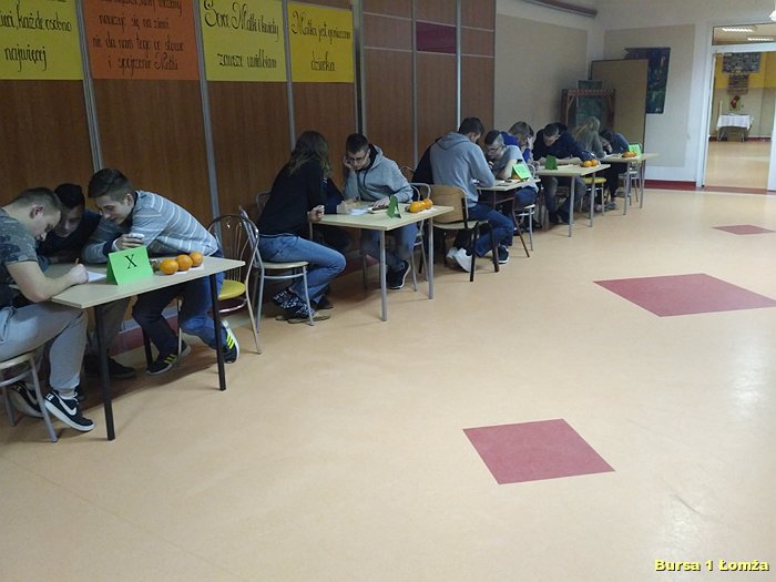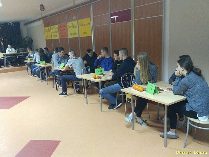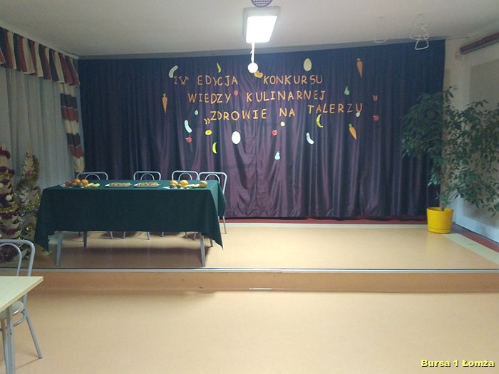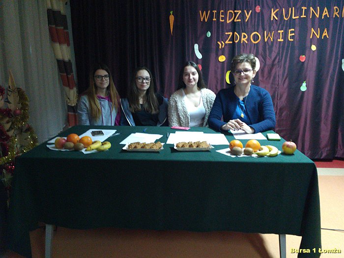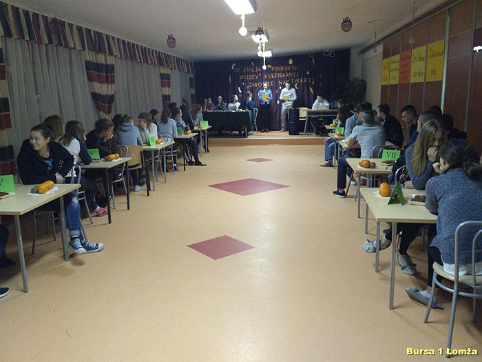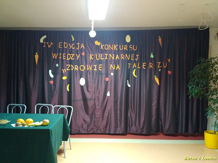 Kolejny już raz w Bursie Szkolnej Nr 1 w Łomży wychowankowie mieli okazję wziąć udział w IV edycji konkursu wiedzy kulinarnej „Zdrowie na talerzu”. Organizatorami konkursu byli opiekunowie koła kulinarnego p. Małgorzata Dudzińska oraz p. Bożena Wiśniewska. W konkursie tradycyjnie uczestniczyły trzyosobowe zespoły spośród dziesięciu grup. Zawodnicy mieli za zadanie w ciągu 15 minut rozwiązać krzyżówkę, dotyczącą zdrowej żywności. Wszyscy uczestnicy byli bardzo skupieni oraz zaangażowani. Nad poprawnością przebiegu konkursu czuwało czteroosobowe jury. Zwycięzcami zostali: