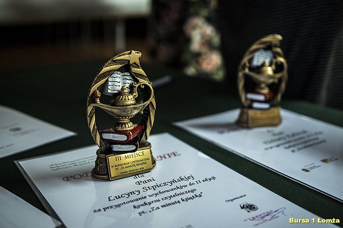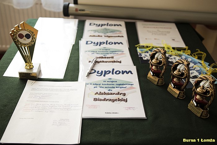 W dniu 25 kwietnia 2018 r. w Bursie Szkolnej Nr 1 Łomży odbyło się podsumowanie II edycji konkursu czytelniczego pt. „Za minutę książka”. Konkurs skierowany był do uczniów szkół ponadgimnazjalnych miasta Łomża oraz do wychowanków burs i internatów województwa podlaskiego. Zadaniem konkursu było przedstawienie zwiastuna filmowego zamykającego się w jednej minucie.