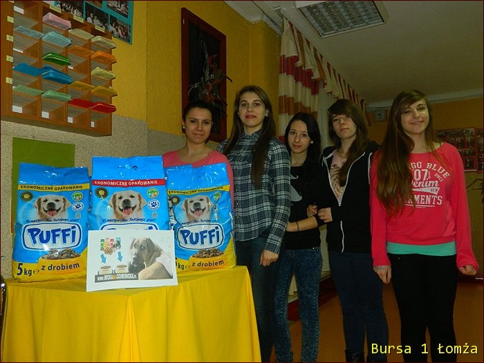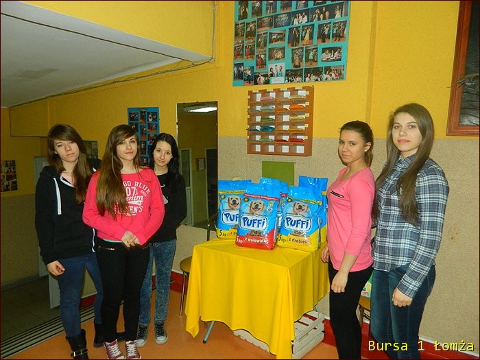Koordynatorem działań w bursie była p. Marta Jankowska i wychowanki z grupy VI ( Ewa Załuska, Marlena Łempicka, Paula Trzaska, Anna Łuba, Natalia Sobiech). Dziewczęta z entuzjazmem podjęły się zbiórki pieniędzy, za które została zakupiona karma dla bezdomnych psów.