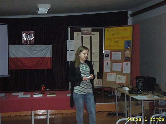 W poniedziałek 29 lutego 2016 r. młodzież Bursy Szkolnej Nr 1 w Łomży uczciła Pamięć o Żołnierzach Niezłomnych. W bursie odbyło się spotkanie patriotyczne. Program przygotowany został we współpracy ze Stowarzyszeniem Civitas Christiana przy udziale Pani Anny Mroczkowskiej. Nasze działanie miało na celu pogłębianie wiedzy historycznej o działalności oddziałów II Konspiracji po 1945 roku oraz poznanie prawdy dotyczącej historii Żołnierzy Niezłomnych Ziemi Łomżyńskiej i Białostockiej.