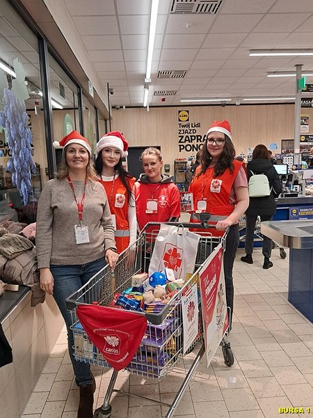 Młodzież Bursy Szkolnej Nr 1 w Łomży wraz z opiekunami wzięła udział w świątecznej ogólnopolskiej akcji zbiórki żywności CARITAS „TAK. Pomagam!”. Wychowankowie zbierali żywność w sklepie Lidl przy ulicy Zjazd 15a w godzinach od 16.00 do 18.00. Zebrana żywność zostanie przeznaczona na świąteczne paczki dla osób znajdujących się w trudnej sytuacji życiowej.