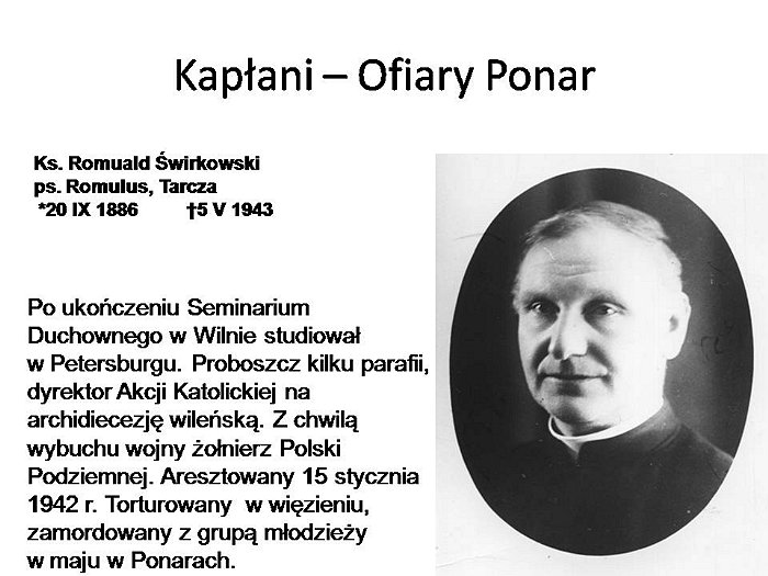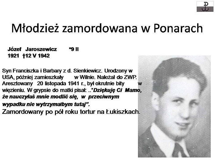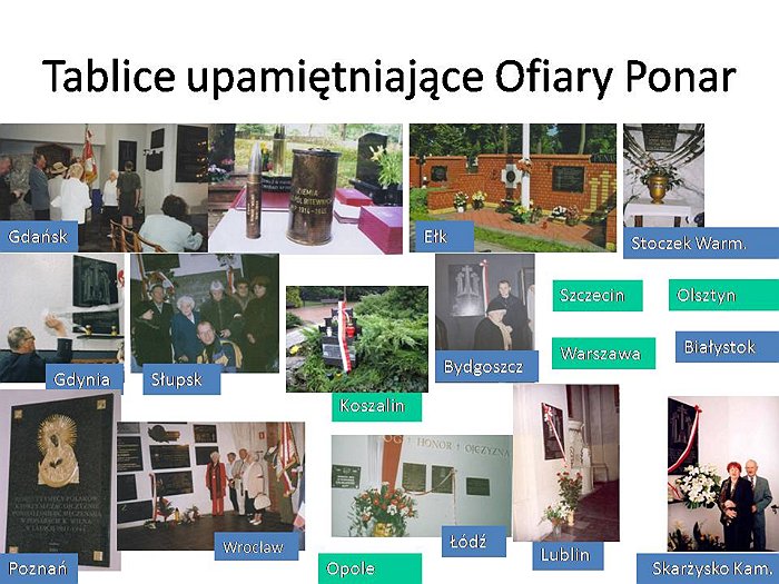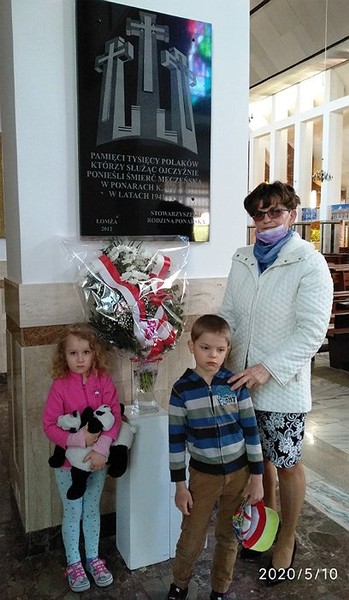 Z inicjatywy Stowarzyszenia, którego aktualnie prezesem jest Pani profesor Maria Wieloch, powstają Tablice i pomniki upamiętniające Ofiary zbrodni ponarskiej. Obecnie znajdują się w 34 miejscach w Polsce i 3 na Litwie. W Łomży pod Tablicą, która znajduje się w Sanktuarium p.w. Miłosierdzia Bożego złożyliśmy kwiaty i zapaliliśmy znicz.