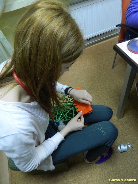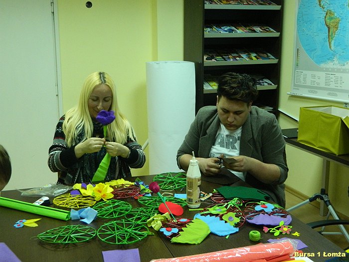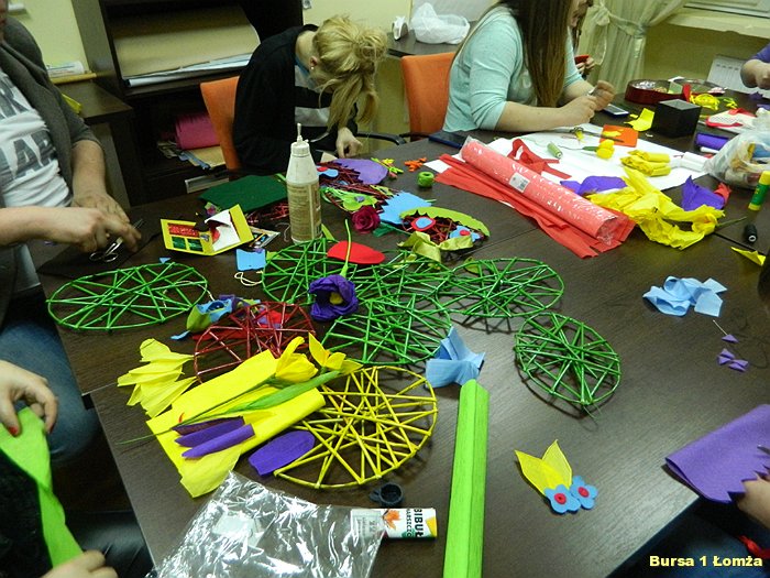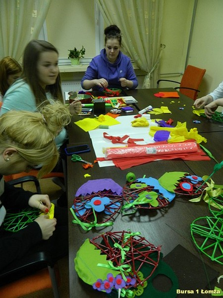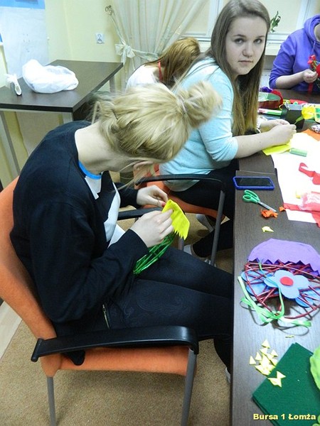 Młodzież Bursy Szkolnej Nr 1 w Łomży chętnie uczestniczy w warsztatach artystycznych doskonaląc swoje umiejętności oraz poznając nowe techniki twórczego działania.