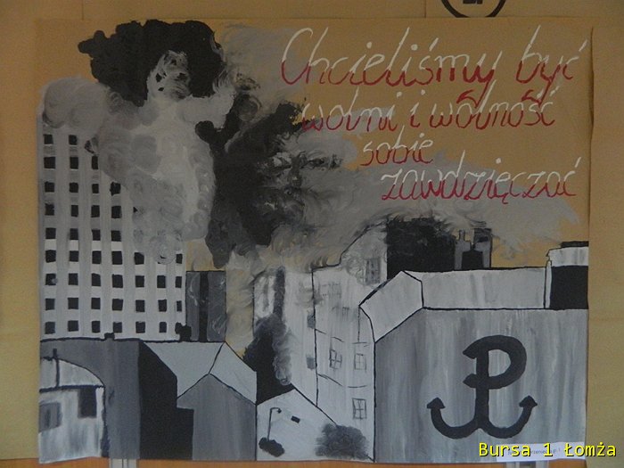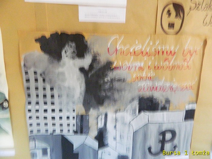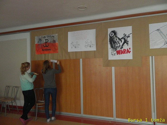 Dnia 16 marca 2015 roku przystąpiliśmy do realizacji projektu pt. „Szlakiem Powstania Warszawskiego”. Głównym założeniem projektu było propagowanie wartości patriotycznych i kształtowanie postaw patriotycznych wśród młodzieży. Pierwsze działanie polegało na wykonaniu przez młodzież uczestniczącą w projekcie plakatów o tematyce „Mały sabotaż” konspiracyjnej organizacji „Wawer” w okupowanej Warszawie. W świetlicy Bursy została przygotowana wystawa prac plastycznych, którą mogli podziwiać wszyscy mieszkańcy i pracownicy Bursy. Wystawa stanowiła też niewątpliwie doskonałą scenografię wieczornic i spotkań tematycznych ujętych w harmonogramie projektu.