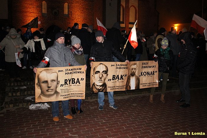 W tym roku młodzież Bursy Szkolnej Nr 1 w Łomży, aby uczcić Pamięć o Żołnierzach Niezłomnych, uczestniczyła w różnych formach upamiętnienia bohaterów. W czwartek 23 lutego 2017 r. w Domku Pastora w Łomży obejrzeliśmy film pt: „Zapora” przedstawiający sylwetkę Mieczysława Dekutowskiego, prezentowany przez IPN Białystok. W niedzielę 26 lutego uczestniczyliśmy we Mszy Świętej w intencji Ojczyzny i w Marszu Pamięci Żołnierzy Wyklętych.
