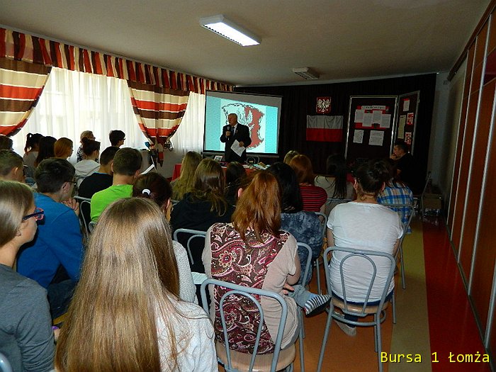 Dnia 22 września 2015 roku zrealizowaliśmy kolejne zadanie z Projektu „Wieczna Pamięć”. Licznie zgromadzona młodzież z Bursy Szkolnej Nr 1 w Łomży wraz z wychowawcami uczestniczyła w spotkaniu z Sybirakiem Panem Jerzym Szymanowskim.