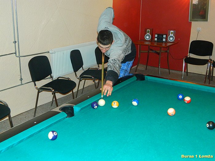 Grudniowego popołudnia 2013 r. w Bursie Szkolne Nr 1 w Łomży odbył się turniej bilardowy. Wzięło w nim udział 11 wychowanków. Rozgrywki bilardowe przeprowadzono systemem przekazowym.