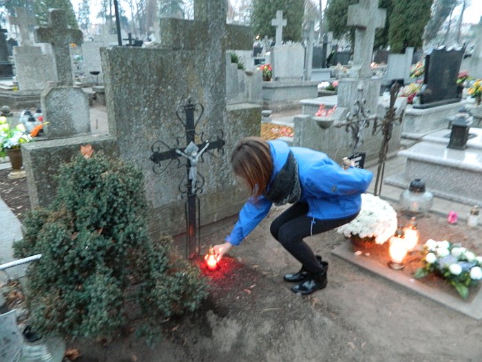 Młodzież bursy zapaliła znicze na opuszczonych grobach.