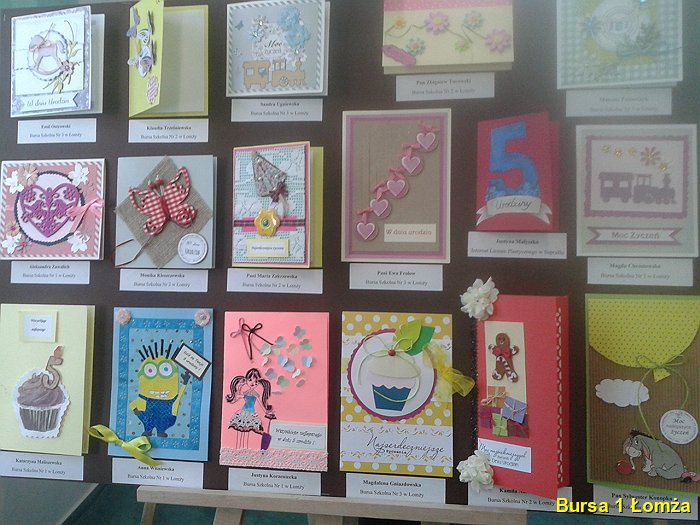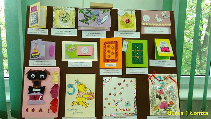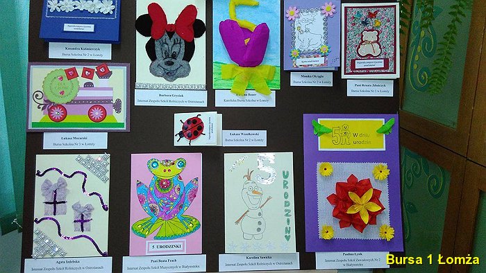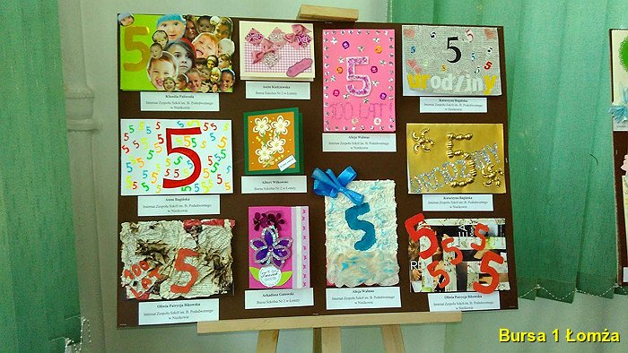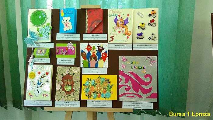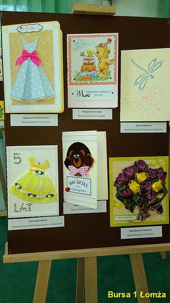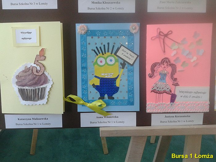 Wychowanki Bursy Szkolnej Nr 1 w Łomży wzięły udział w konkursie na tradycyjną kartkę okolicznościową pod tytułem „W dniu 5 urodzin”, organizowanym przez Bursę Szkolną Nr 3 w Łomży. Podsumowanie konkursu odbyło się 18 maja 2016 roku. W konkursie udział wzięły: K. Maliszewska z grupy VI, A. M. Wiśniewska z gr. I, J. Korzeniecka z gr. I, oraz J. Niecikowska z grupy I, która otrzymała wyróżnienie.