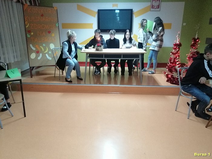Przedstawiciele trzy osobowych zespołów spośród dziesięciu grup wychowawczych uczestniczyli w VI edycji konkursu wiedzy kulinarnej pt: „Zdrowie na Talerzu”. Organizatorami konkursu byli opiekunowie koła kulinarnego. Emocji podczas konkursu nie brakowało. Zawodnicy w pierwszej części konkursu mieli za zadanie rozwiązać krzyżówkę, natomiast w drugiej części testu wybrać jedną prawidłową odpowiedź. Za całość poprawnie rozwiązanej krzyżówki i testu można było zdobyć 31 punktów. Nad prawidłowym przebiegiem rozgrywki czuwało cztero osobowe jury. Zwycięzcami konkursu „Zdrowie na Talerzu” zostali: