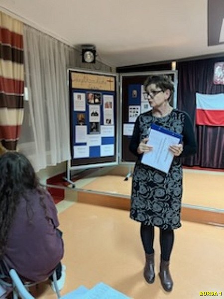 W dalszej części spotkania była krótka gawęda pani Urszuli Przesław o żołnierzach Armii Krajowej i Narodowych Sił Zbrojnych: o Jadwidze Dziekońskiej ps. „Jadzia”, Tadeuszu Nowackim, Adamie Dziekońskim ps. „Michałowski”.