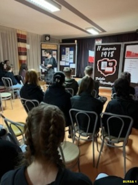 Dnia 19 listopada 2024 roku w Bursie Szkolnej Nr 1 odbył się „Wieczór Pieśni Patriotycznych”. W uroczystości udział wzięli Wychowawcy i Wychowankowie. Przygotowany program miał na celu utrwalanie pamięci o ludziach i wydarzeniach dotyczących burzliwej historii Polski, budzenie szacunku dla Bohaterów i Symboli Narodowych oraz integrację młodzieży poprzez wspólne śpiewanie pieśni patriotycznych.