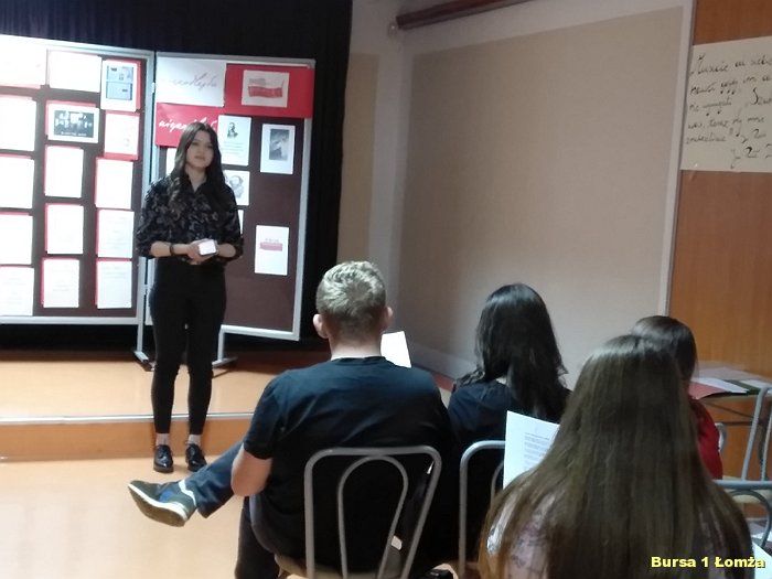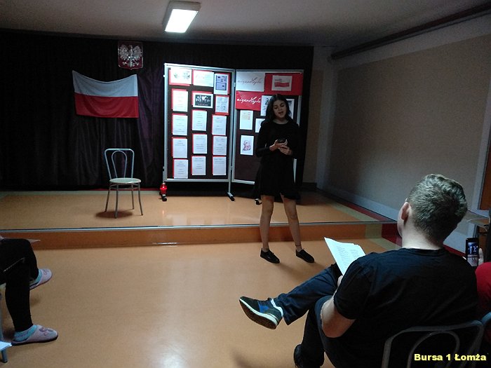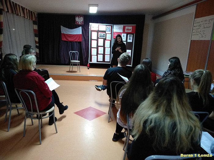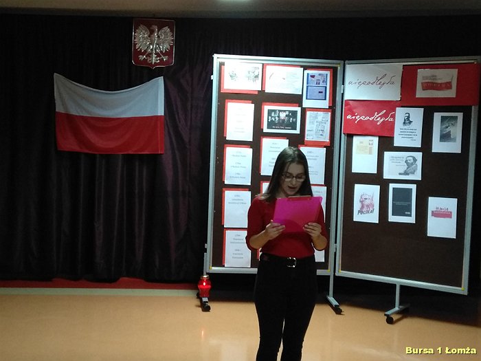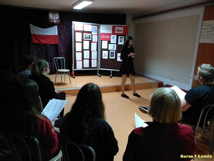 Z tej okazji w 101 rocznicę odzyskania niepodległości w Bursie Szkolnej Nr 1 w Łomży odbył się Wieczór Poezji i Pieśni Patriotycznej.