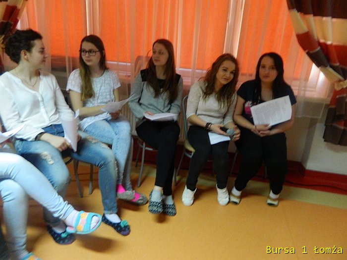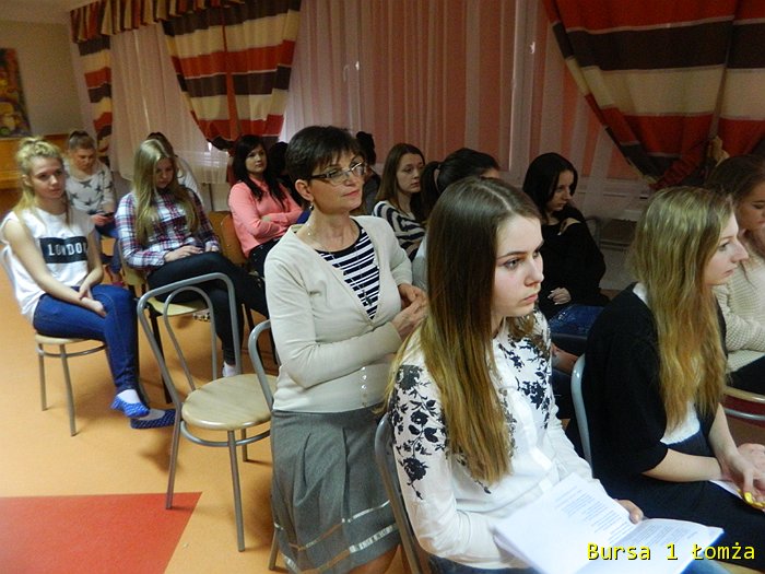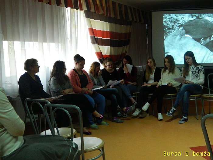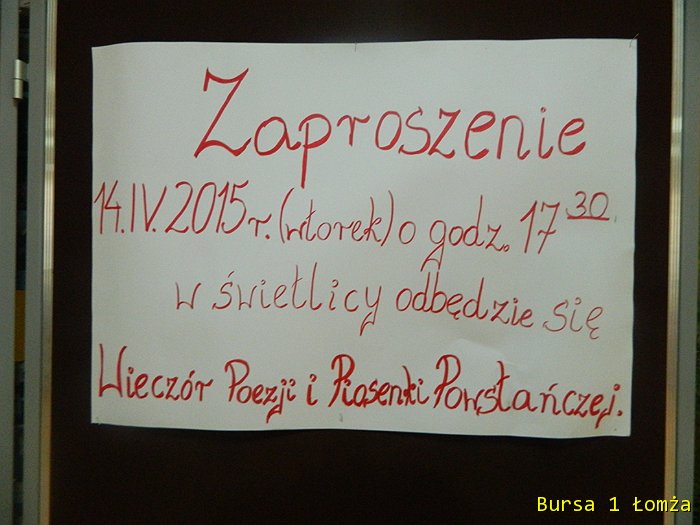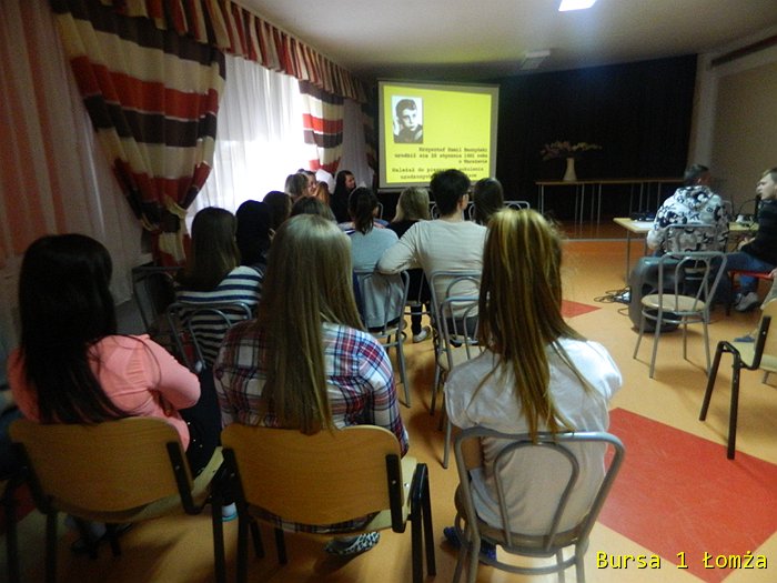 Dnia 14 kwietnia w świetlicy Bursy w ramach projektu odbył się „Wieczór poezji i piosenki powstańczej”. Młodzież wraz z wychowawcami obejrzała prezentację multimedialną pt. „Życie i twórczość Krzysztofa Kamila Baczyńskiego”. Prezentacja ta przybliżyła postać polskiego poety czasu wojny, podchorążego, żołnierza Armii Krajowej, podharcmistrza Szarych Szeregów, jednego z przedstawicieli pokolenia Kolumbów, który zginął 4 sierpnia 1944 r. w czasie powstania warszawskiego, jako żołnierz batalionu „Parasol” Armii Krajowej.