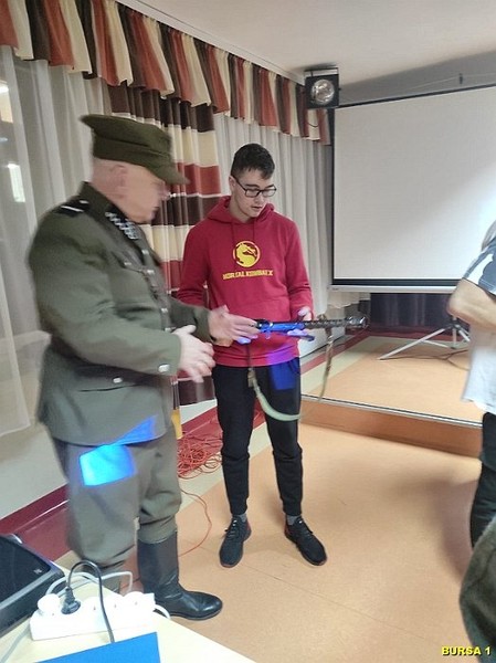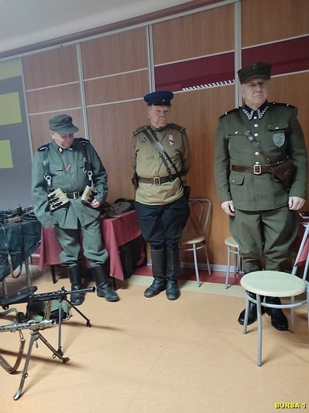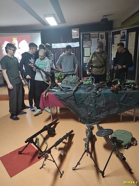 W dalszej części spotkania młodzież miała możliwość oglądania bogatej kolekcji replik broni z okresu II wojny światowej, mundurów, albumów i innych eksponatów, co rozbudziło ciekawość młodzieży. Atrakcją spotkania były również bezpośrednie rozmowy młodzieży z prelegentami i robienie zdjęć pamiątkowych. Na pamiątkę spotkania młodzież mogła wziąć Gazetkę „Głos Narwi” i książki „Moje wojenne dzieciństwo”.