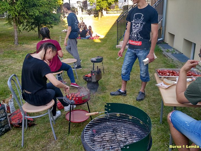 Miłą tradycją Bursy Szkolnej Nr 1 w Łomży jest grill, który zwiastuje nadchodzące lato. Cała społeczność bursy spotyka się wtedy w naszym ogrodzie. Karkówka, kiełbaski, sałatki, roześmiane towarzystwo, to gwarancja dobrej zabawy i znak, że wakacje tuż, tuż… Wszyscy bawią się świetnie, jedzą z apetytem i mają nadzieję, że spotkają się znów za rok.