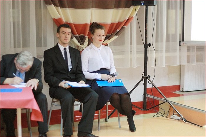 Prezenterami przeglądu byli: wychowankowie Bursy Szkolnej Nr 1 w Łomży Ewa Grabowska i Dawid Najda oraz wychowawczyni P. Urszula Przesław.
