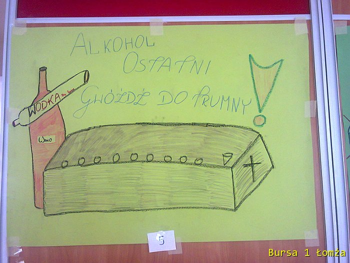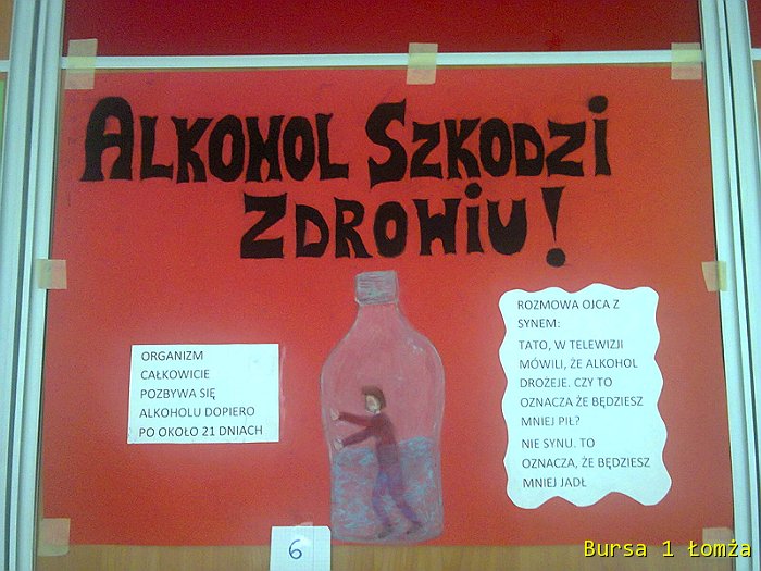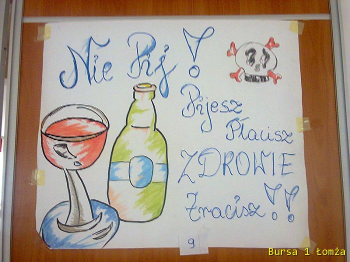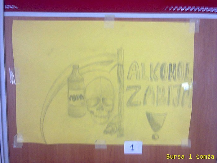 W Bursie Szkolnej Nr 1 w Łomży w kwietniu 2014 roku odbył się międzygrupowy konkurs plastyczny pt: „Alkohol szkodzi”. Organizatorkami były p. J. Świderska i p. U. Przesław. Wychowankowie wykonywali różnorodną techniką plakaty związane z powyższą tematyką. Wystawa wszystkich prac plastycznych została zorganizowana w świetlicy bursy, tak aby wszyscy wychowankowie mogli się z nią zapoznać. Nagrodzone prace zostały oprawione w antyramy i wyeksponowane na korytarzach placówki.