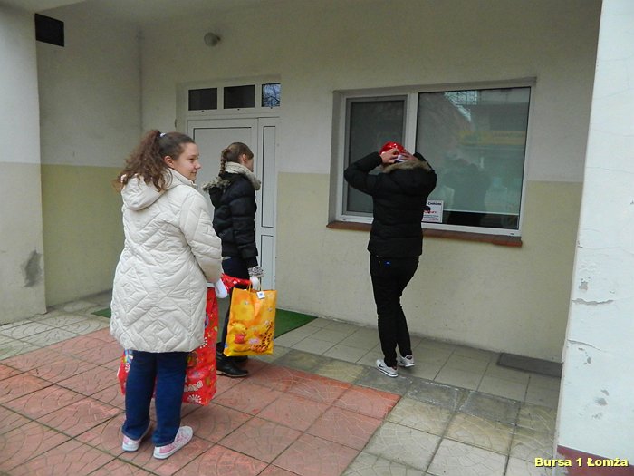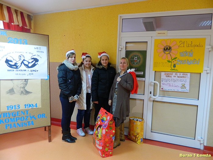 Dnia 4 grudnia 2013 r. Wychowanki z Koła Wolontariatu Bursy Szkolnej Nr 1 w Łomży przekazały dzieciom upominki zebrane podczas Mikołajkowej Zbiórki Zabawek.