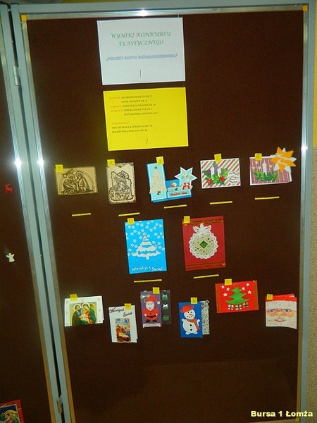 W konkursie plastycznym na projekt „Najpiękniejszej kartki bożonarodzeniowej” wzięło udział 13 wychowanków Bursy Szkolnej Nr 1 w Łomży. Dnia 18.12.2014 r. Komisja w składzie: