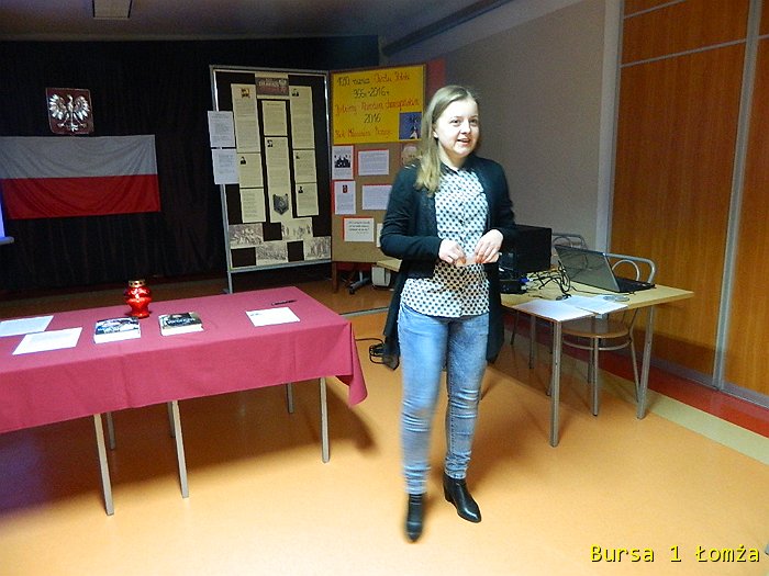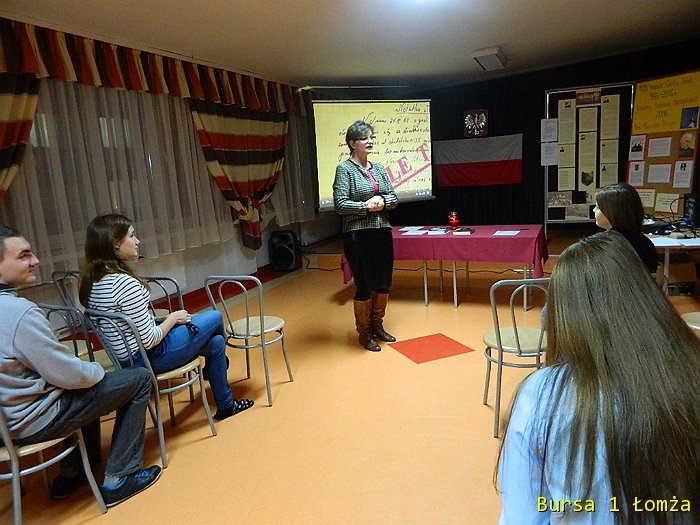 W poniedziałek 29 lutego 2016 r. młodzież Bursy Szkolnej Nr 1 w Łomży uczciła Pamięć o Żołnierzach Niezłomnych. W bursie odbyło się spotkanie patriotyczne. Program przygotowany został we współpracy ze Stowarzyszeniem Civitas Christiana przy udziale Pani Anny Mroczkowskiej. Nasze działanie miało na celu pogłębianie wiedzy historycznej o działalności oddziałów II Konspiracji po 1945 roku oraz poznanie prawdy dotyczącej historii Żołnierzy Niezłomnych Ziemi Łomżyńskiej i Białostockiej.