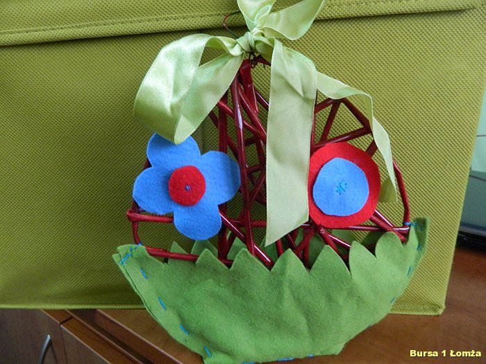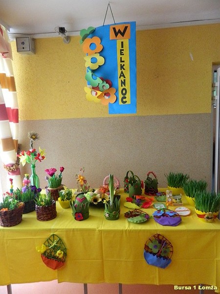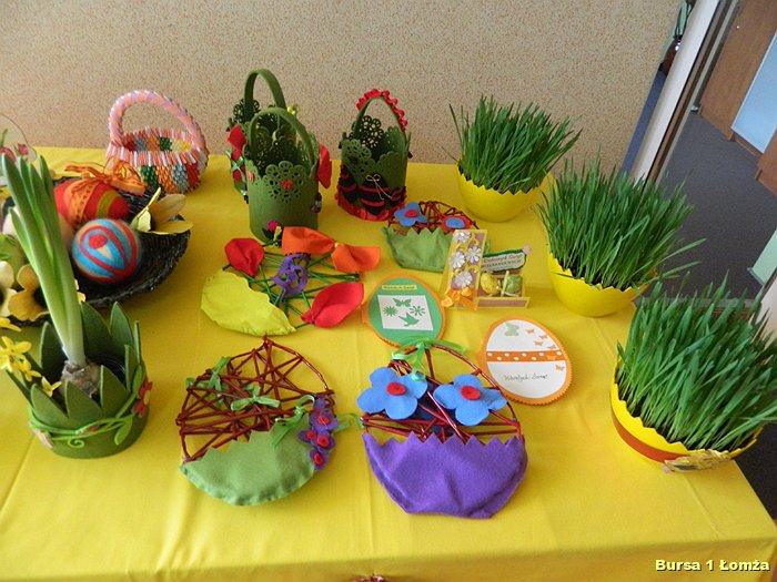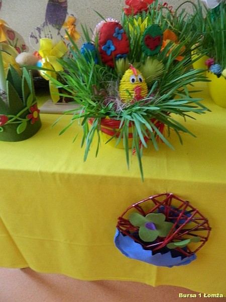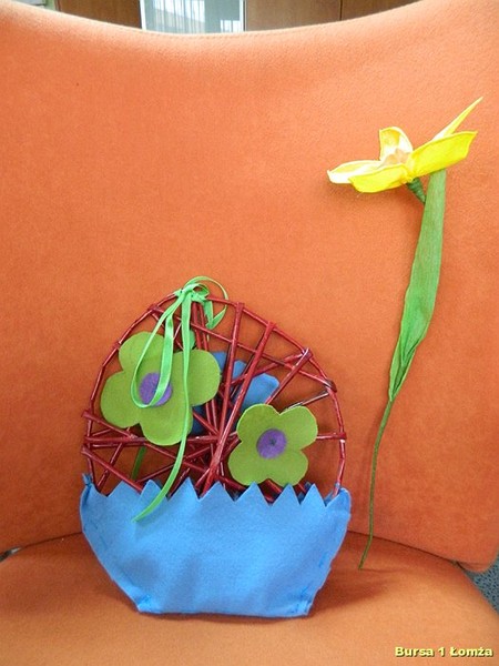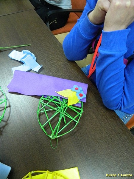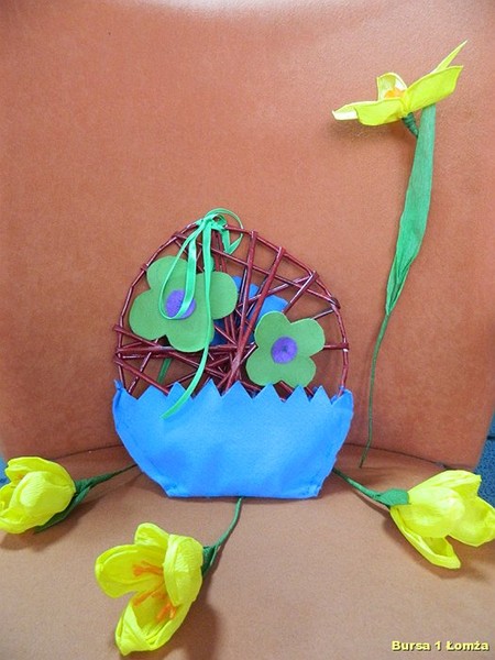 Wychowankowie mieli okazję nauczyć się wykonania palm wielkanocnych z tworzywa przyrodniczego, wiosennych kwiatów z krepiny oraz pisanek z wikliny papierowej, filcu i wełny.