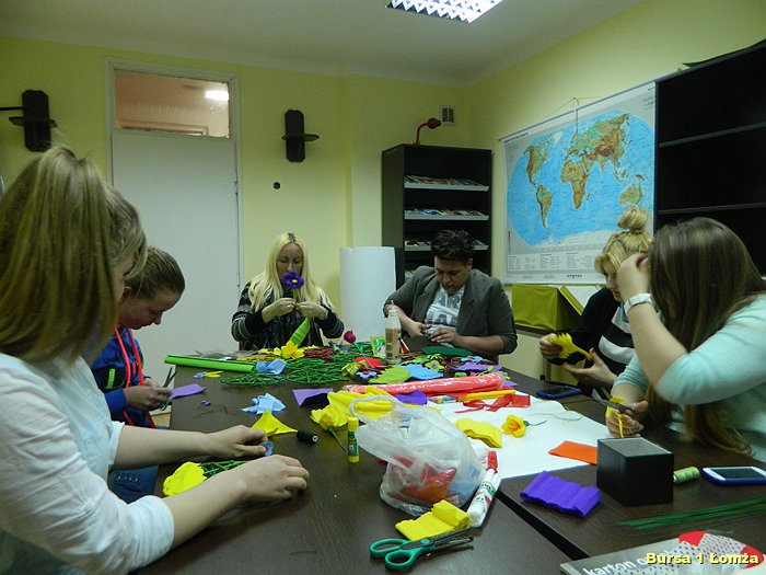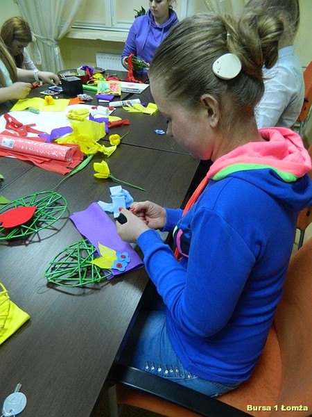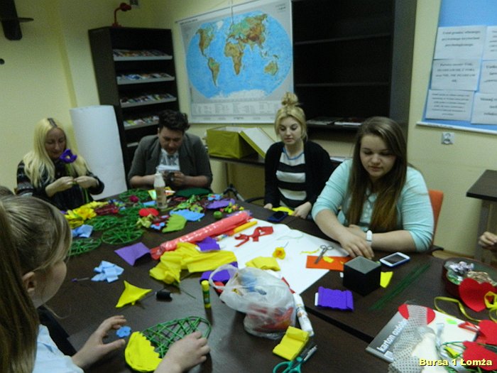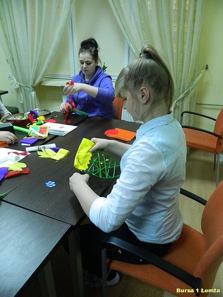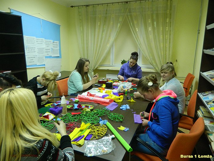 Młodzież Bursy Szkolnej Nr 1 w Łomży chętnie uczestniczy w warsztatach artystycznych doskonaląc swoje umiejętności oraz poznając nowe techniki twórczego działania.