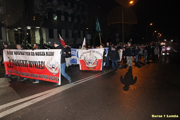 W tym roku młodzież Bursy Szkolnej Nr 1 w Łomży, aby uczcić Pamięć o Żołnierzach Niezłomnych, uczestniczyła w różnych formach upamiętnienia bohaterów. W czwartek 23 lutego 2017 r. w Domku Pastora w Łomży obejrzeliśmy film pt: „Zapora” przedstawiający sylwetkę Mieczysława Dekutowskiego, prezentowany przez IPN Białystok. W niedzielę 26 lutego uczestniczyliśmy we Mszy Świętej w intencji Ojczyzny i w Marszu Pamięci Żołnierzy Wyklętych.