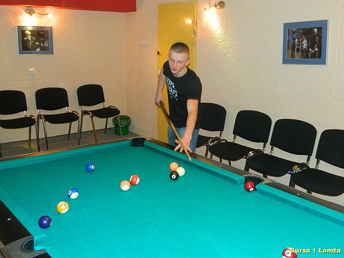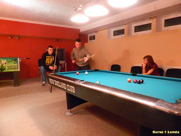 Grudniowego popołudnia 2013 r. w Bursie Szkolne Nr 1 w Łomży odbył się turniej bilardowy. Wzięło w nim udział 11 wychowanków. Rozgrywki bilardowe przeprowadzono systemem przekazowym.