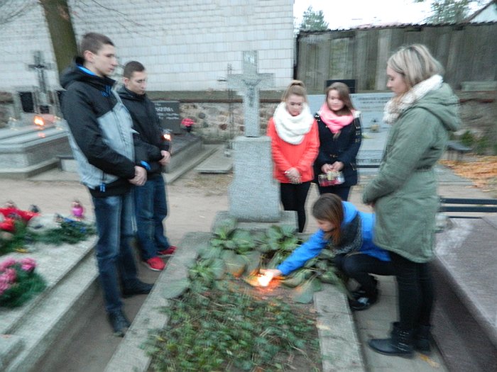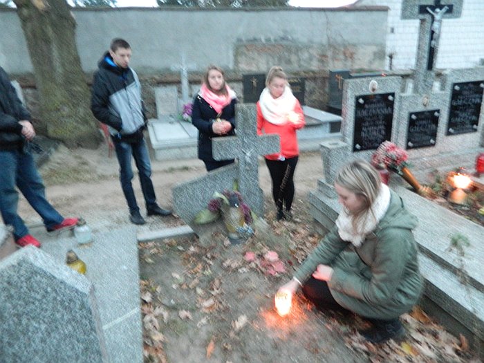 Młodzież bursy zapaliła znicze na opuszczonych grobach.