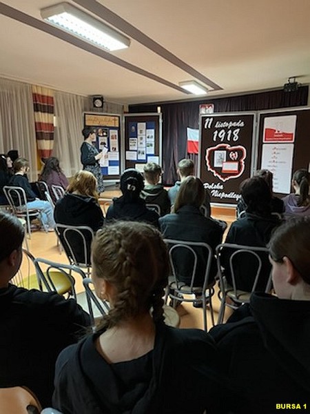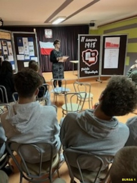 Dnia 19 listopada 2024 roku w Bursie Szkolnej Nr 1 odbył się „Wieczór Pieśni Patriotycznych”. W uroczystości udział wzięli Wychowawcy i Wychowankowie. Przygotowany program miał na celu utrwalanie pamięci o ludziach i wydarzeniach dotyczących burzliwej historii Polski, budzenie szacunku dla Bohaterów i Symboli Narodowych oraz integrację młodzieży poprzez wspólne śpiewanie pieśni patriotycznych.