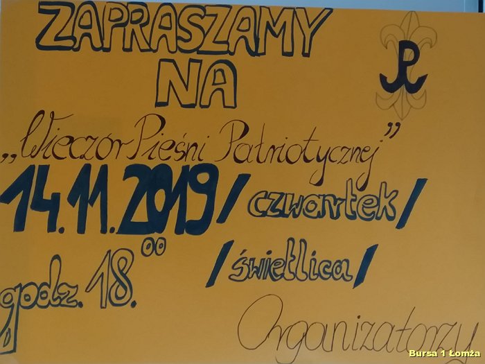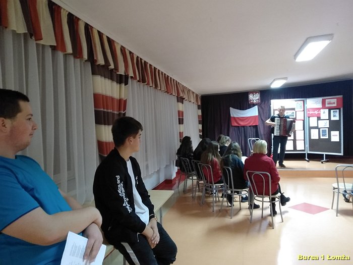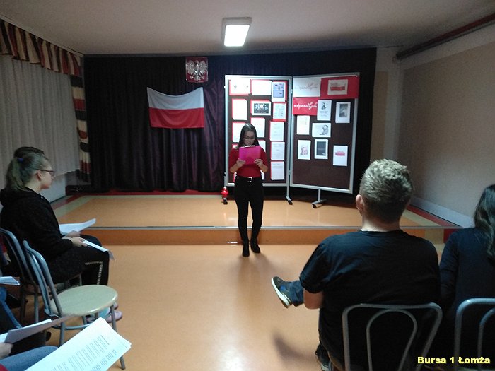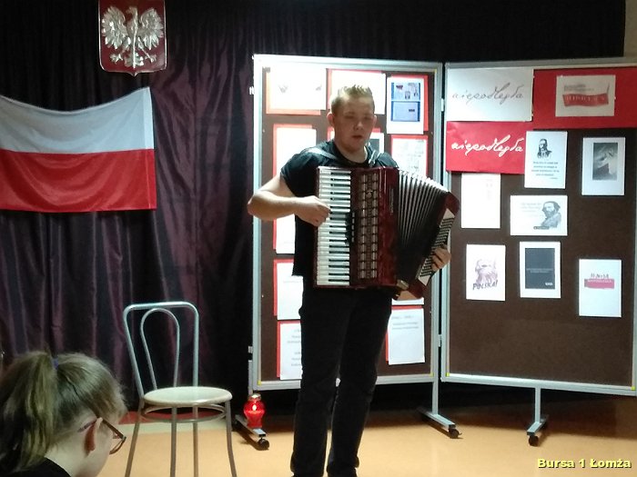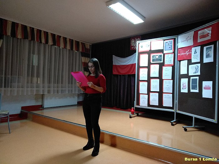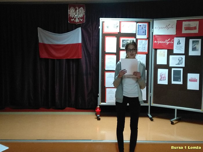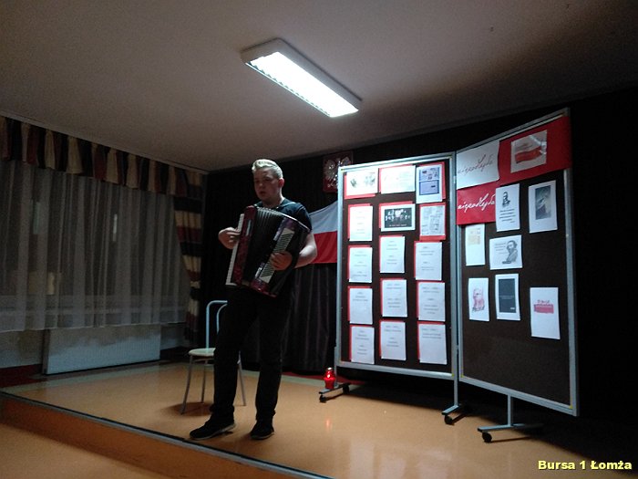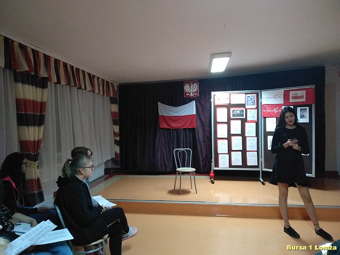 Z tej okazji w 101 rocznicę odzyskania niepodległości w Bursie Szkolnej Nr 1 w Łomży odbył się Wieczór Poezji i Pieśni Patriotycznej.