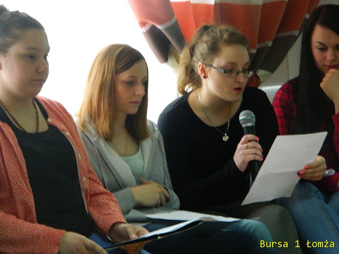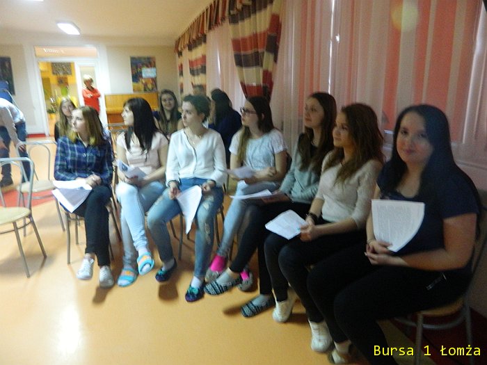 Dnia 14 kwietnia w świetlicy Bursy w ramach projektu odbył się „Wieczór poezji i piosenki powstańczej”. Młodzież wraz z wychowawcami obejrzała prezentację multimedialną pt. „Życie i twórczość Krzysztofa Kamila Baczyńskiego”. Prezentacja ta przybliżyła postać polskiego poety czasu wojny, podchorążego, żołnierza Armii Krajowej, podharcmistrza Szarych Szeregów, jednego z przedstawicieli pokolenia Kolumbów, który zginął 4 sierpnia 1944 r. w czasie powstania warszawskiego, jako żołnierz batalionu „Parasol” Armii Krajowej.