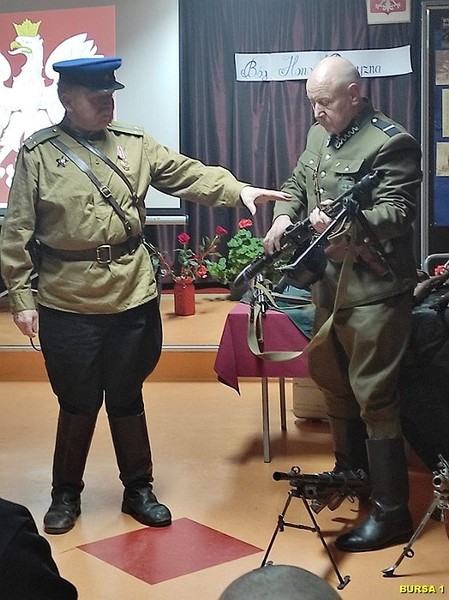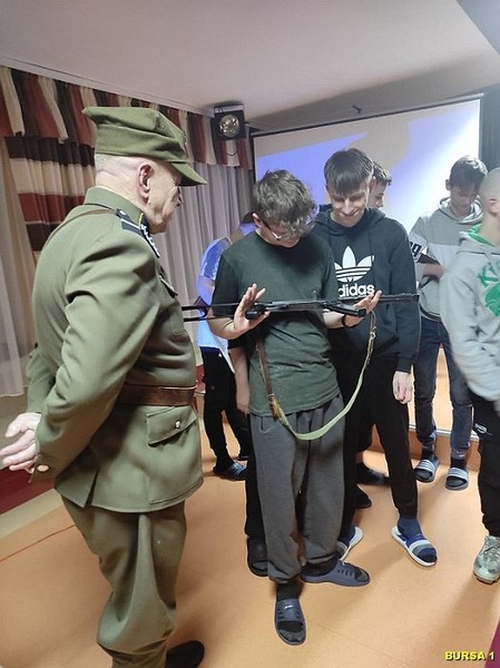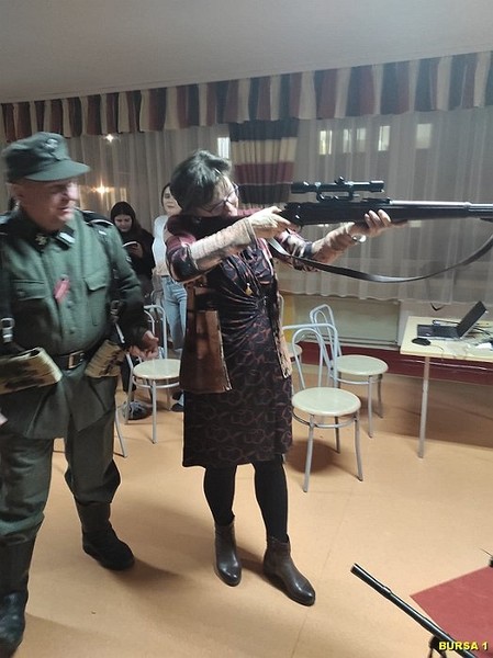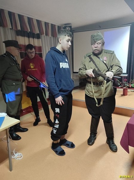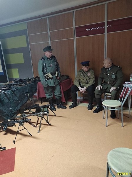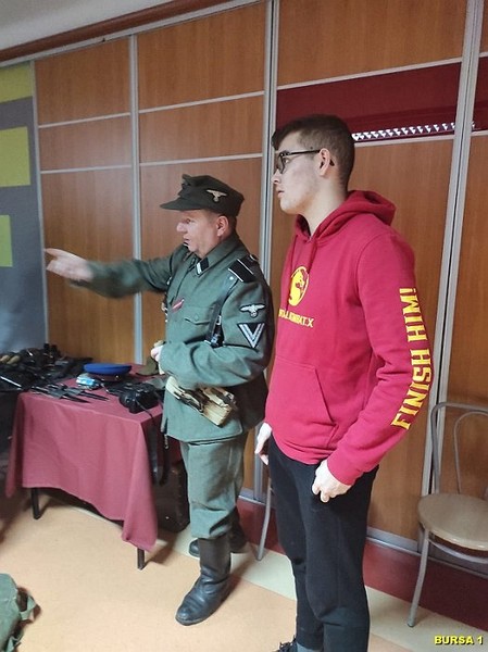 W dalszej części spotkania młodzież miała możliwość oglądania bogatej kolekcji replik broni z okresu II wojny światowej, mundurów, albumów i innych eksponatów, co rozbudziło ciekawość młodzieży. Atrakcją spotkania były również bezpośrednie rozmowy młodzieży z prelegentami i robienie zdjęć pamiątkowych. Na pamiątkę spotkania młodzież mogła wziąć Gazetkę „Głos Narwi” i książki „Moje wojenne dzieciństwo”.