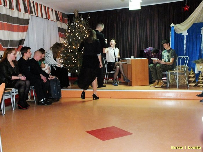Zanim wspólnie zasiedliśmy do wieczerzy wigilijnej obejrzeliśmy przedstawienie pod tytułem: „Brak wolnych pokoi”. Występ artystyczny przygotowali wychowankowie pod opieką P. Marty Jankowskiej i P. Beaty Pezowicz. Przedstawienie było bardzo współczesne, ale przesłanie takie, jak ponad dwa tysiące lat temu, kiedy Jezus Chrystus przyszedł na świat i nie było dla niego miejsca.