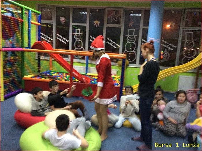 Dnia 8 grudnia 2014 r. wychowanki Bursy Szkolnej Nr 1 w Łomży należące do Koła Wolontariatu razem z opiekunami wybrały się wspólnie z dziećmi ze Świetlicy Fundacji „Ocalenie” do sali zabaw. Chcieliśmy sprawić trochę radości naszym małym przyjaciołom. Humory dopisywały wszystkim uczestnikom zabawy. Dziękujemy Stowarzyszeniu Społeczno – Oświatowemu „Horyzonty” w Łomży i pracownikom Fundacji za pomoc finansową i organizacyjną.